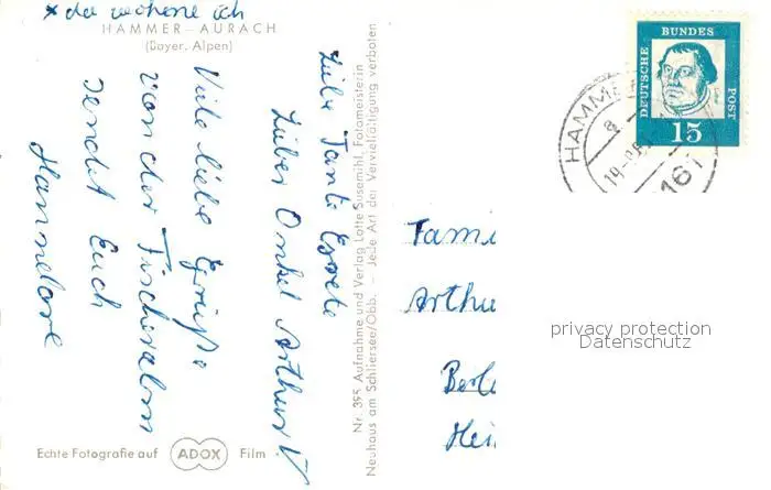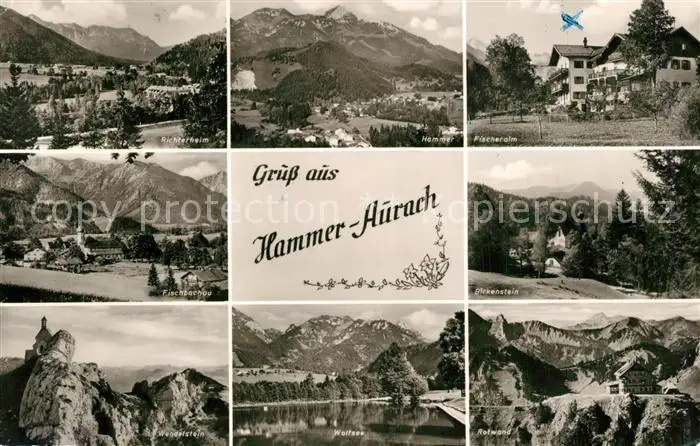 Aurach_Hammer Landschaftspanorama Fischeralm Wendelstein Wolfsee Rotwand Bayerische Alpen Aurach Hammer postalisch gelaufen 1963 Erhaltung siehe scans [FriedD77] Frierer