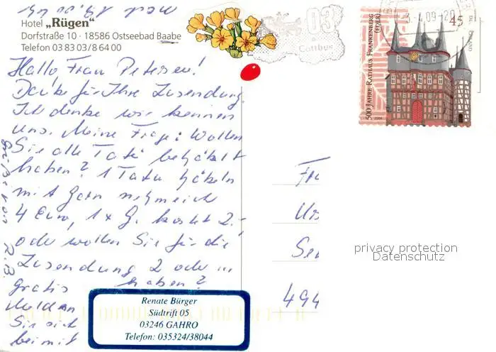 Baabe_Ostseebad_Ruegen Hotel Ruegen Baabe_Ostseebad_Ruegen postalisch gelaufen 2009 Erhaltung siehe scans [FriedD77] Frierer