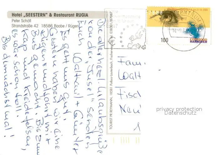 Baabe_Ostseebad_Ruegen Hotel Seestern Baabe_Ostseebad_Ruegen postalisch gelaufen nach 1965 Erhaltung siehe scans [WerneD78] WernPID7