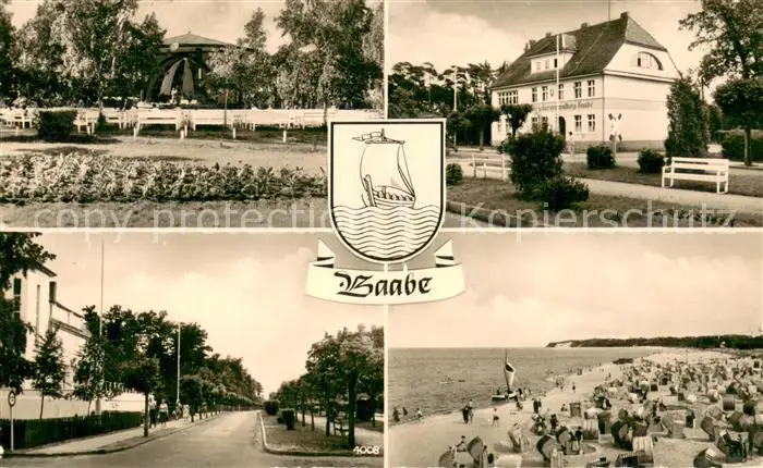 AK / Ansichtskarte Baabe_Ostseebad_Ruegen Musikpavillon Promenade Strandleben Kurverwaltung Baabe_Ostseebad_Ruegen