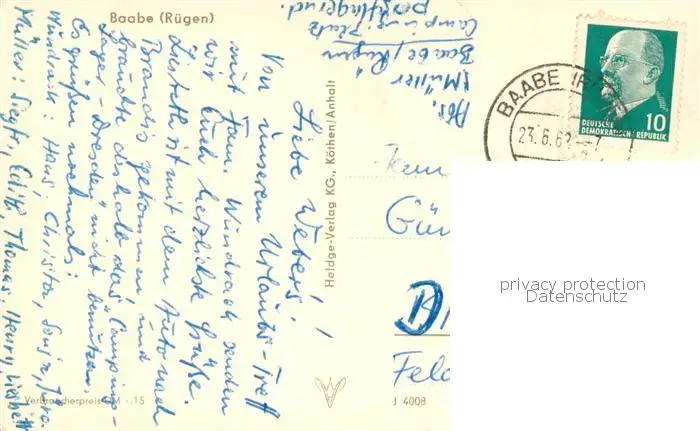Baabe_Ostseebad_Ruegen Musikpavillon Promenade Strandleben Kurverwaltung Baabe_Ostseebad_Ruegen postalisch gelaufen 1962 Erhaltung siehe scans [FriedD77] Frierer