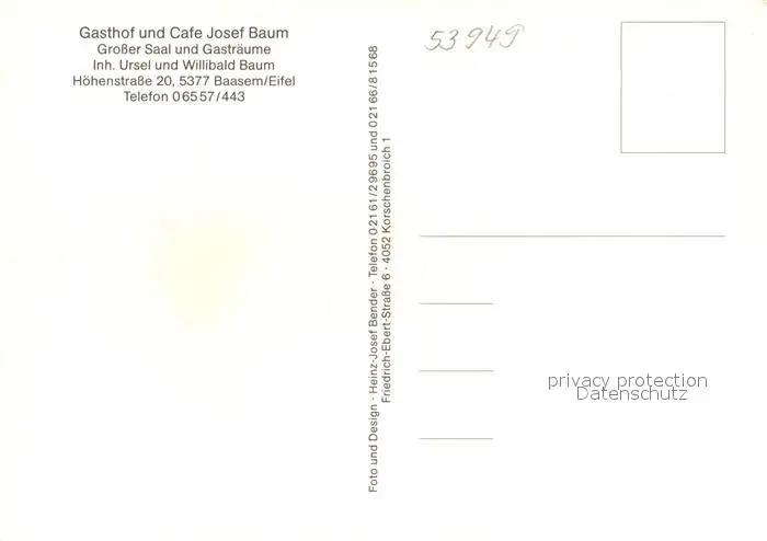 Baasem Gasthaus Café Josef Baum Baasem postalisch nicht gelaufen nach 1965 Erhaltung siehe scans [LiesaD40] LiesID40