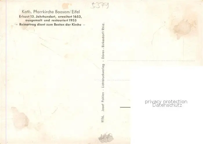 Baasem Katholische Pfarrkirche Innenansicht 13. Jhdt. Baasem postalisch nicht gelaufen 1921-1965 Erhaltung siehe scans [FriedD77] Frierer