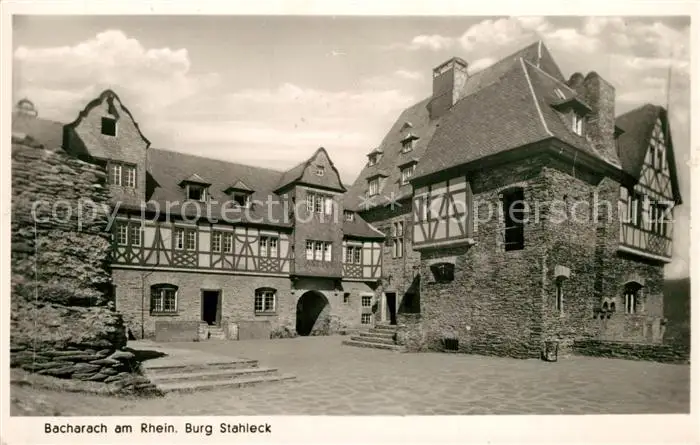 Bacharach_Rhein Burg Stahleck Bacharach Rhein postalisch nicht gelaufen 1950 Erhaltung siehe scans [FriedD77] Frierer