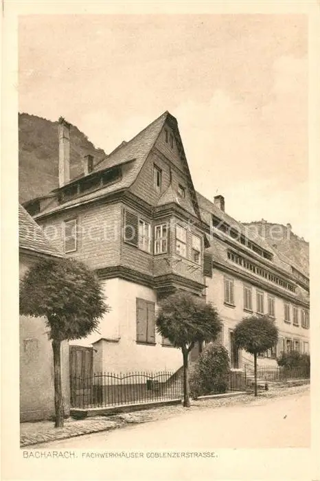 Bacharach_Rhein Fachwerkhaeuser Koblenzerstrasse Kupferdruck Bacharach Rhein postalisch nicht gelaufen 1911 Erhaltung siehe scans [FriedD77] Frierer