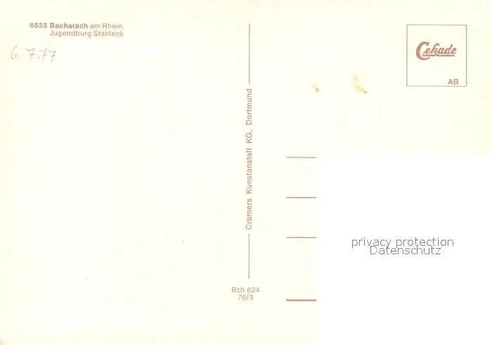 Bacharach_Rhein Jugendburg Stahleck Bacharach Rhein postalisch nicht gelaufen 1977 Erhaltung siehe scans [KathaD81] Kathoren