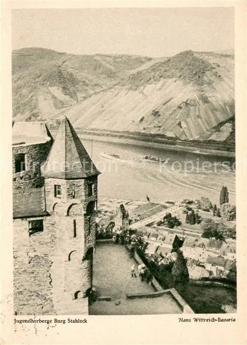 AK / Ansichtskarte Bacharach_Rhein Jugendherberge Burg Stahleck Blick auf den Rhein Bacharach Rhein