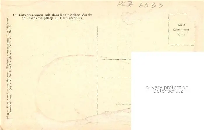 Bacharach_Rhein Post Kupferdruck Bacharach Rhein postalisch nicht gelaufen 1911 Erhaltung siehe scans [FriedD77] Frierer
