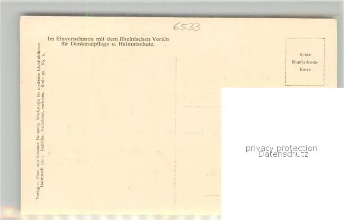Bacharach_Rhein Post Rheinischer Verein fuer Denkmalpflege und Heimatschutz Serie 50 No 3 Kupferdruck Bacharach Rhein postalisch nicht gelaufen 1911 Erhaltung siehe scans [FriedD77] Frierer