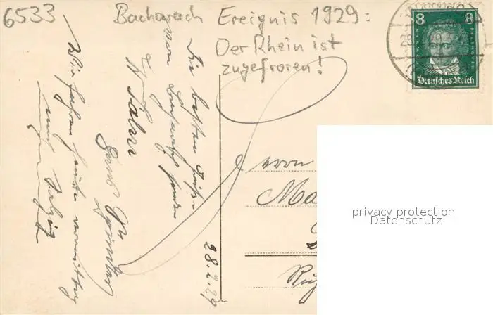 Bacharach_Rhein Zugefrorener Rhein 1929 Bacharach Rhein postalisch gelaufen 1929 Erhaltung siehe scans [WerneD78] WernPID7