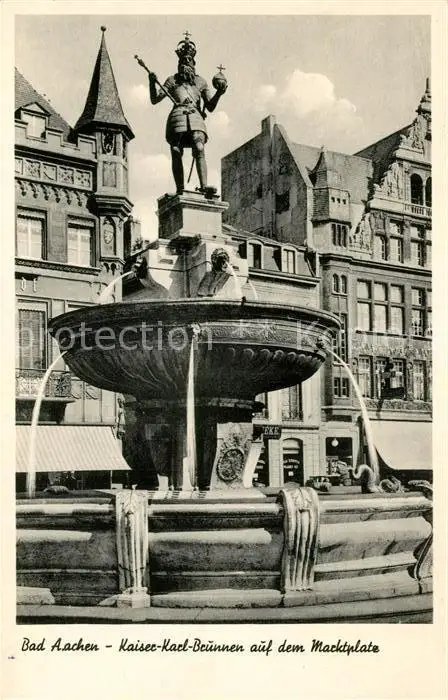 Bad_Aachen Kaiser Karl Brunnen auf dem Marktplatz Bad_Aachen postalisch nicht gelaufen 1921-1965 Erhaltung siehe scans [WerneD78] WernPID7
