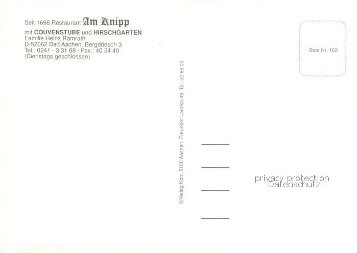 Bad_Aachen Restaurant Am Knipp mit Couvenstube und Hirschgarten Bad_Aachen postalisch nicht gelaufen nach 1965 Erhaltung siehe scans [WerneD78] WernPID7