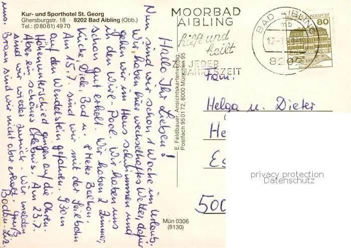 Bad_Aibling Hotel St Georg Hallenbad Kirche Bad_Aibling postalisch gelaufen 1989 Erhaltung siehe scans [WerneD78] WernPID7