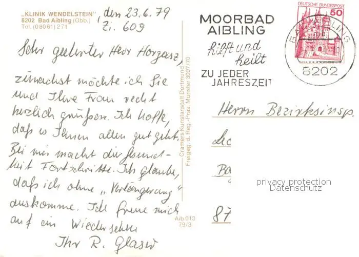 Bad_Aibling Klinik Wendelstein Alpen Bad_Aibling postalisch gelaufen 1979 Fliegeraufnahme Erhaltung siehe scans [FriedD77] Fliegeraufnahme Frierer