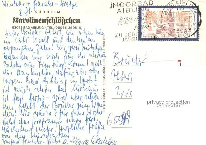 Bad_Aibling Kurheim Karolinenschloesschen Bad_Aibling postalisch gelaufen 1994 Erhaltung siehe scans [FriedD77] Frierer
