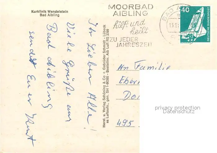 Bad_Aibling Kurklinik Wendelstein Fliegeraufnahme Bad_Aibling postalisch gelaufen 1976 Erhaltung siehe scans [WerneD78] WernPID7