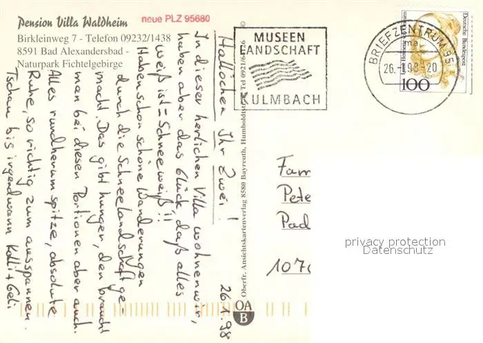 Bad_Alexandersbad Pension Villa Waldheim Weiher Garten Gastraeume Bad_Alexandersbad postalisch gelaufen 1998 Erhaltung siehe scans [WerneD78] WernPID7