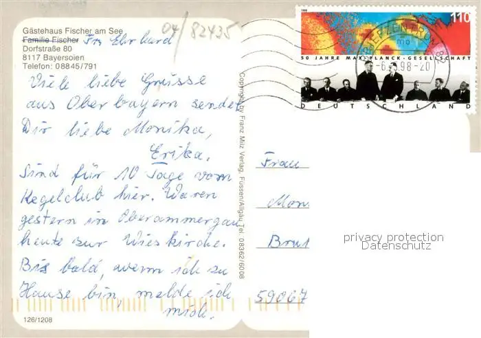 Bad_Bayersoien Gaestehaus Fischer am See Restaurant Fremdenzimmer Bad_Bayersoien postalisch gelaufen 1998 Erhaltung siehe scans [FriedD77] Frierer