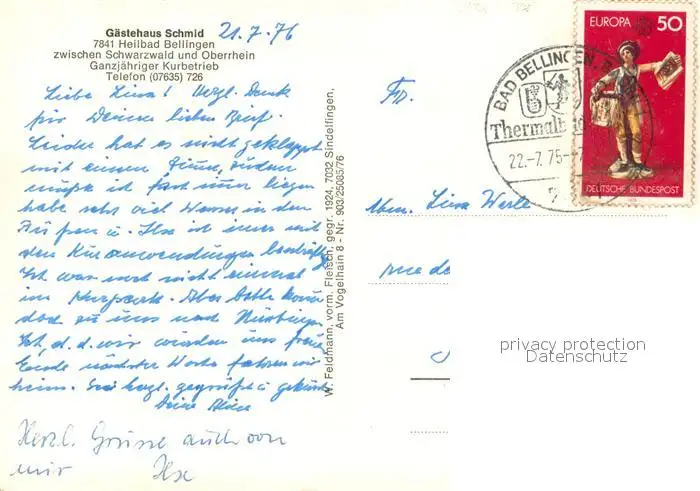Bad_Bellingen Gaestehaus Schmid Pool Brunnen Gastraum Kirche Bad_Bellingen postalisch gelaufen 1976 Erhaltung siehe scans [WerneD78] WernPID7