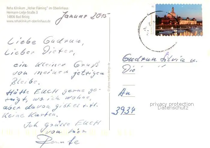Bad_Belzig Reha Klinikum Hoher Flaeming im Oberlinhaus Bad_Belzig postalisch gelaufen 2015 Erhaltung siehe scans [FriedD77] Frierer