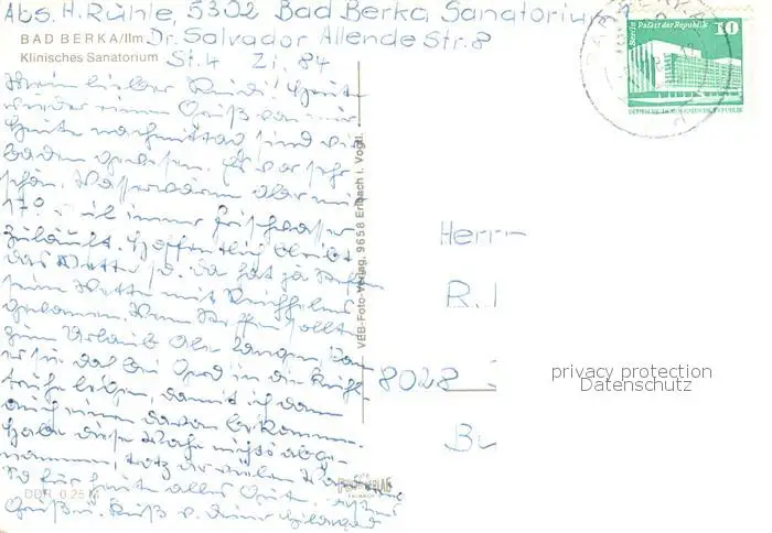 Bad_Berka Klinisches Sanatorium Bad_Berka postalisch gelaufen 1984 Erhaltung siehe scans [WerneD78] WernPID7