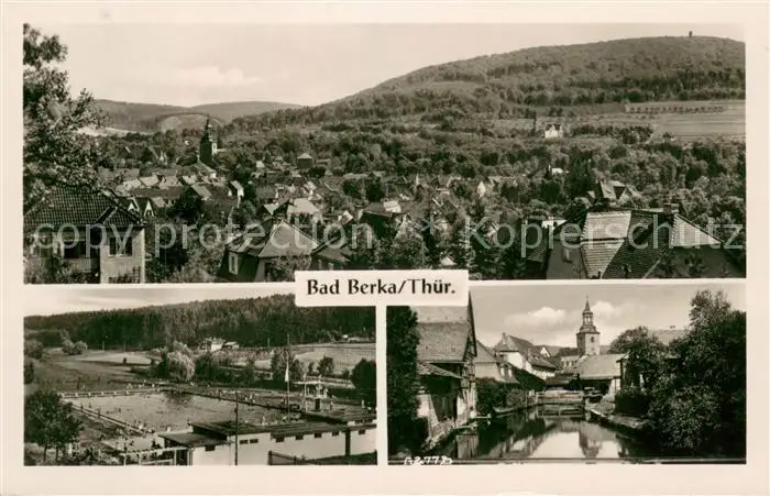 AK / Ansichtskarte Bad_Berka Panorama Freibad Ortsmotiv mit Kirche Bad_Berka