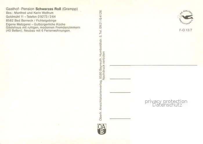 Bad_Berneck Gasthof Pension Schwarzes Ross Roessl Stube Rezeption Bad_Berneck postalisch nicht gelaufen nach 1965 Erhaltung siehe scans [WerneD78] WernPID7