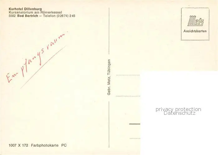 Bad_Bertrich Kurhotel Dillenburg Rezeption Bad_Bertrich postalisch nicht gelaufen nach 1965 Erhaltung siehe scans [FriedD77] Frierer