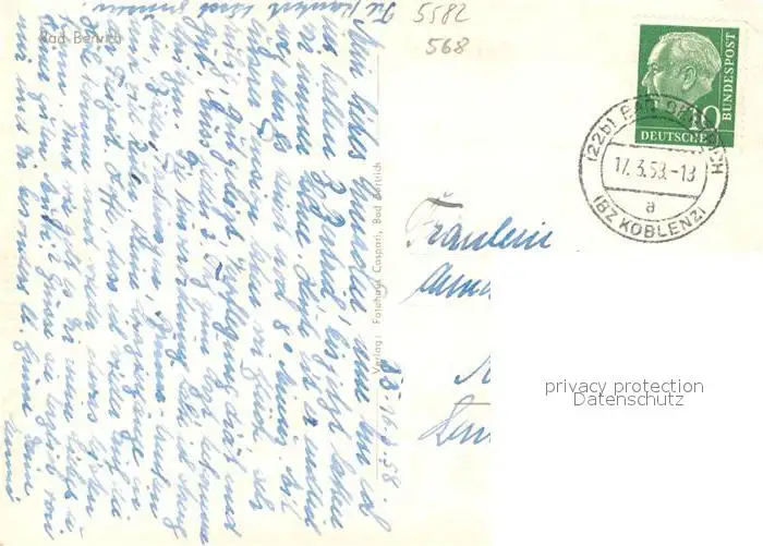 Bad_Bertrich Panorama Blick ins Tal auf den Ort Bad_Bertrich postalisch gelaufen 1958 Erhaltung siehe scans [FriedD77] Frierer