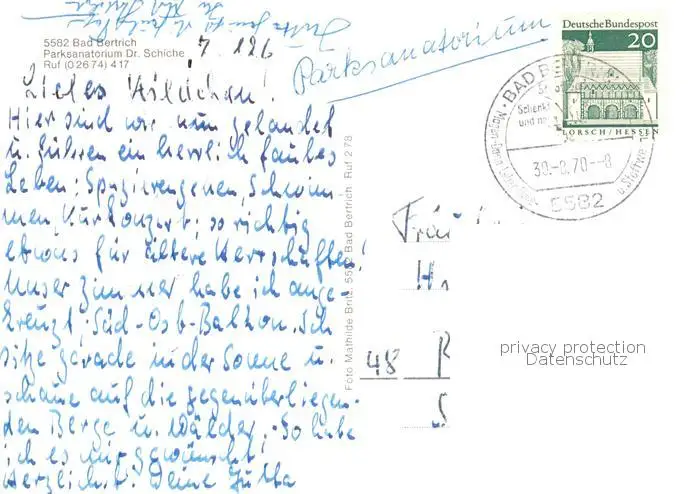 Bad_Bertrich Parksanatorium Dr. Schiche Bad_Bertrich postalisch gelaufen 1970 Erhaltung siehe scans [FriedD77] Frierer