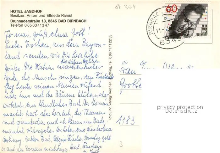 Bad_Birnbach Hotel Jagdhof Hallenbad Badelandschaft Freibad Bad_Birnbach postalisch gelaufen 1990 Erhaltung siehe scans [WerneD78] WernPID7