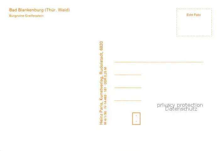 Bad_Blankenburg Burgruine Greifenstein Bad_Blankenburg postalisch nicht gelaufen nach 1965 Erhaltung siehe scans [NatalD47] NataID47