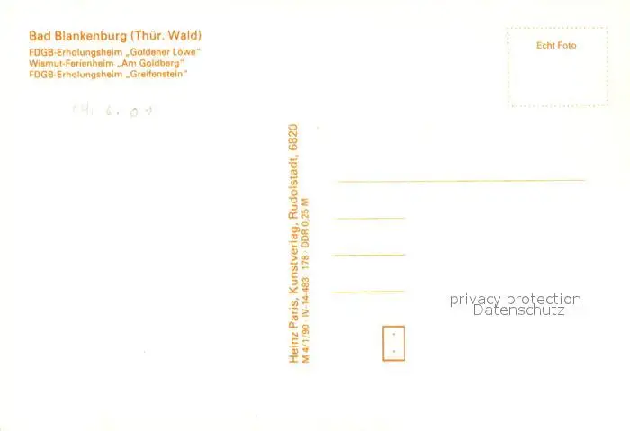 Bad_Blankenburg Erholungsheim Goldener Loewe Ferienheim Am Goldberg Bad_Blankenburg postalisch nicht gelaufen nach 1965 Erhaltung siehe scans [NatalD47] NataID47