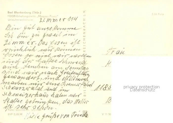 Bad_Blankenburg FDGB Erholungsheim Magnus Poser Urlauberwohnheim Bad_Blankenburg postalisch nicht gelaufen nach 1965 Erhaltung siehe scans [FriedD77] Frierer