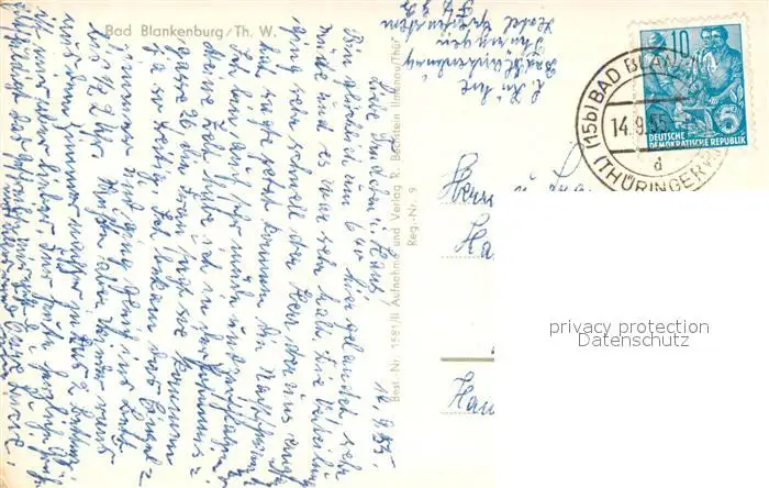 Bad_Blankenburg Ortspartie Bad_Blankenburg postalisch gelaufen 1955 Erhaltung siehe scans [WerneD78] WernPID7
