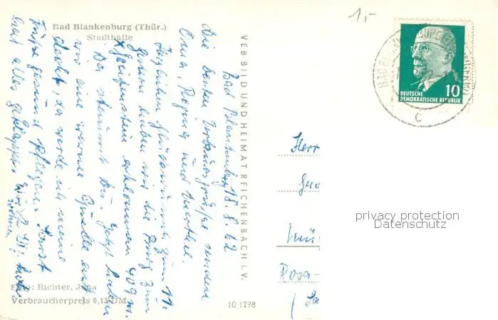 Bad_Blankenburg Stadthalle Bad_Blankenburg postalisch gelaufen 1962 Erhaltung siehe scans [WerneD78] WernPID7