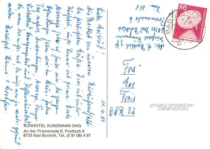 Bad_Bocklet Kurhotel Kunzmann Bad_Bocklet postalisch gelaufen 1980 Erhaltung siehe scans [PaolaD17] PaolPID1