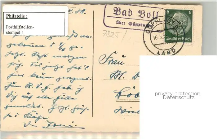 Bad_Boll Ententeich beim Kurhaus Stempel Posthilfstelle Bad_Boll postalisch gelaufen 1938 Erhaltung siehe scans [FriedD77] Frierer