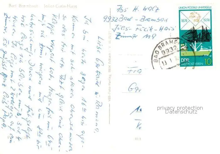Bad_Brambach Joliot-Curie-Haus Bad_Brambach postalisch gelaufen nach 1965 Erhaltung siehe scans [PaolaD17] PaolPID1