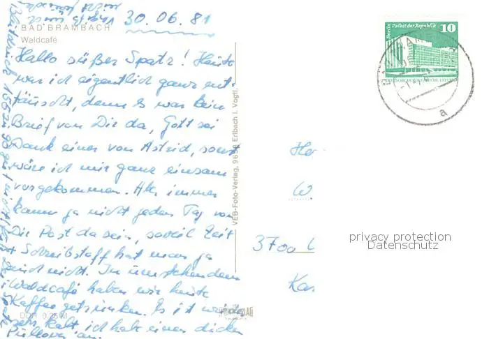 Bad_Brambach Waldcafe Aussenansicht Bad_Brambach postalisch gelaufen 1981 Erhaltung siehe scans [LiesaD40] LiesID40