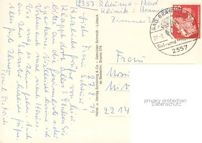 Bad_Bramstedt Rheumaklinik Kuranwendungen Bad_Bramstedt postalisch gelaufen 1979 Erhaltung siehe scans [FriedD77] Frierer