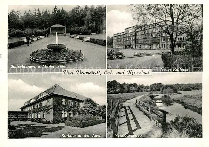 AK / Ansichtskarte Bad_Bramstedt Springbrunnen Musikpavillon Neues Kurhaus Verlobungsweg Bad_Bramstedt