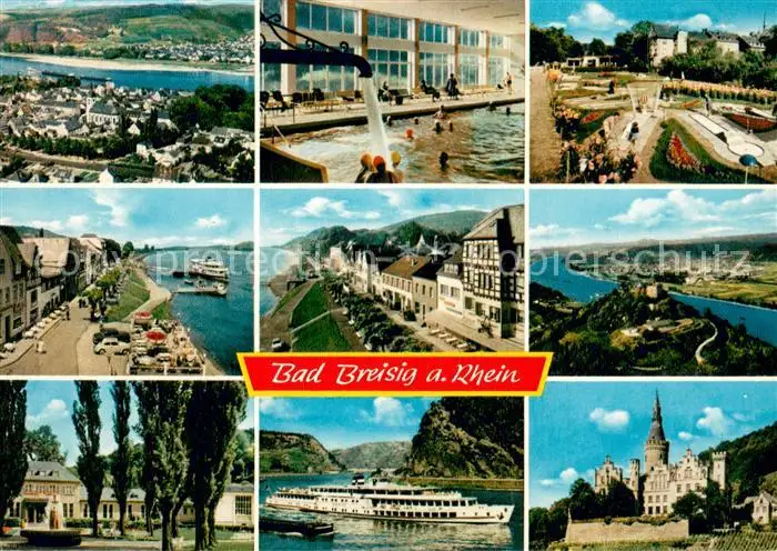 AK / Ansichtskarte Bad_Breisig Rheinpartien Schloss Fahrgastschiff Hallenbad Bad_Breisig