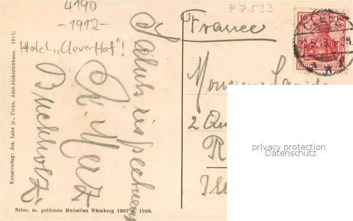 Bad_Cleve Blick von der neuen Bruecke auf die Schwanenburg Bad_Cleve postalisch gelaufen 1912 Erhaltung siehe scans [WerneD78] WernPID7