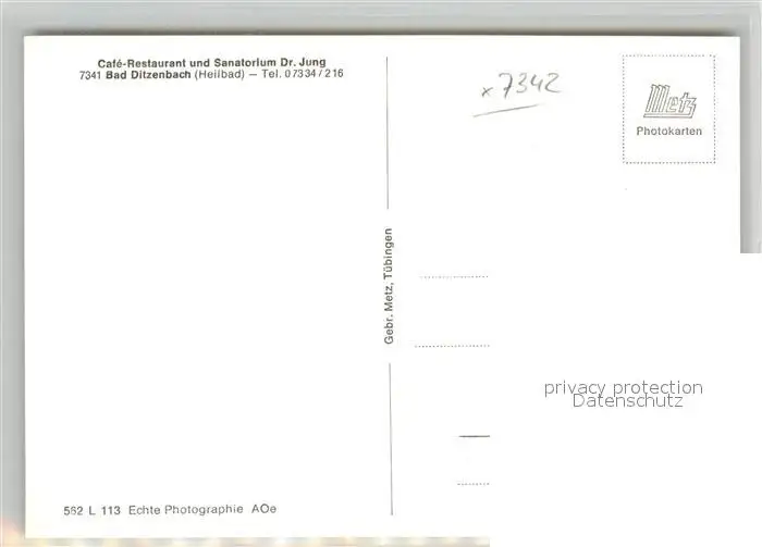 Bad_Ditzenbach Cafe Restaurant Sanatorium Jung Bad_Ditzenbach postalisch nicht gelaufen nach 1965 Erhaltung siehe scans [KathaD81] Kathoren