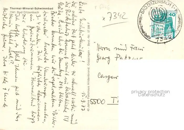 Bad_Ditzenbach Thermal-Mineral-Schwimmbad Bad_Ditzenbach postalisch gelaufen 1977 Erhaltung siehe scans [PaolaD17] PaolPID1