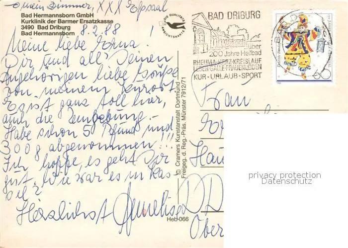 Bad_Driburg Bad Hermannsborn Kurklinik der BEK Fliegeraufnahme Bad_Driburg postalisch gelaufen 1988 Erhaltung siehe scans [FriedD77] Frierer