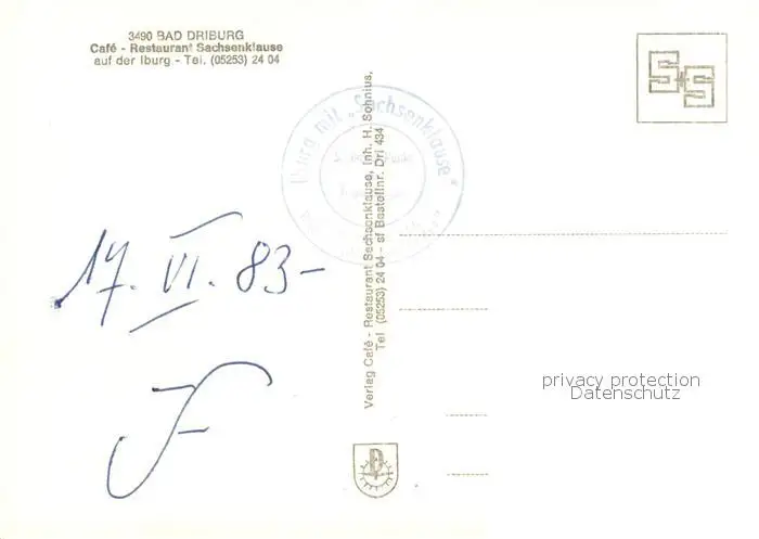 Bad_Driburg Restaurant-Cafe Sachsenklause Aussenansicht m. Terrasse Bad_Driburg postalisch nicht gelaufen 1983 Erhaltung siehe scans [LiesaD40] LiesID40