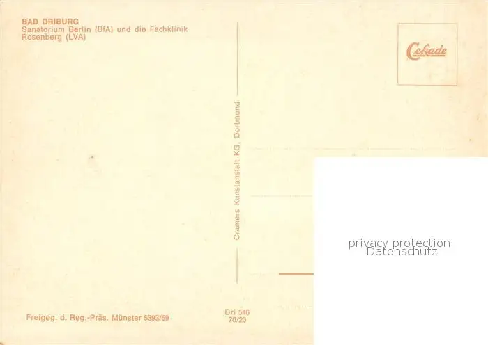 Bad_Driburg Sanatorium Berlin BfA und Fachklinik Rosenberg LVA Fliegeraufnahme Bad_Driburg postalisch nicht gelaufen nach 1965 Erhaltung siehe scans [WerneD78] WernPID7
