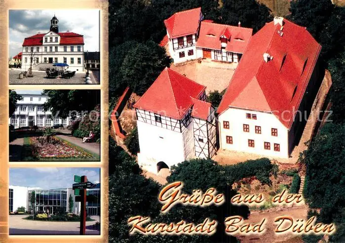 AK / Ansichtskarte Bad_Dueben Rathaus Kurpark mit altem Moorbad Heide Spa Burg mit Burgwaechterhaus Bad_Dueben